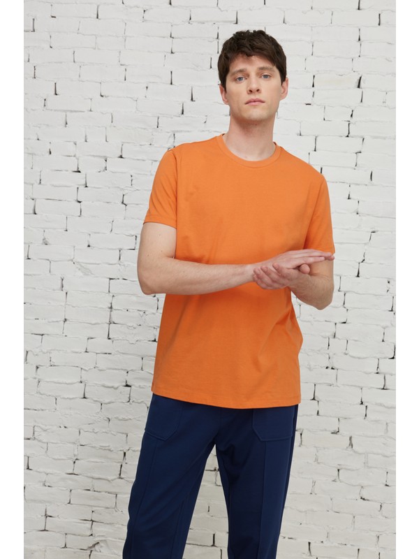 Pamuk, Düz Turuncu, Bisiklet Yaka, Slim Fit, Kısa Kol, Cepsiz, 4